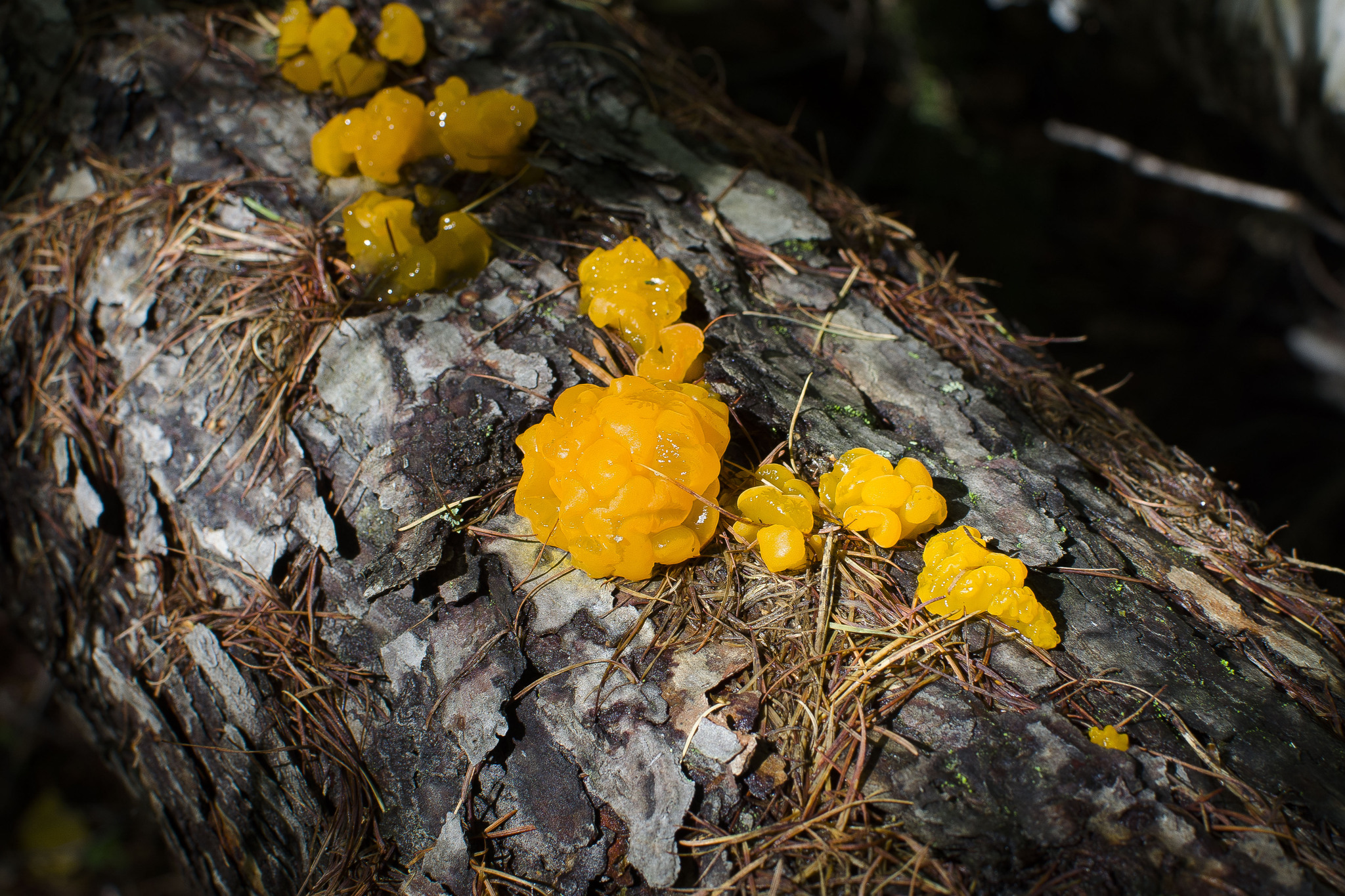 Гриб, который похож на желейный мармелад, Докримицес золотистохохолковый Dacrymyces chrysocomus