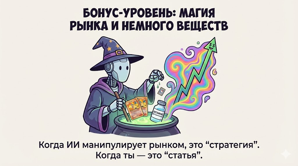 Кейс с Покемонами: Недавно один энтузиаст решил скупить почти все карты определенного редкого Покемона (1995 штук из 2000), оставив на рынке крохи. Потом показал коллекцию в соцсетях. Результат? Цена на оставшиеся карты взлетела до небес. ИИ может научиться делать такие трюки не только с акциями, но и с любыми активами, создавая искусственный дефицит там, где мы даже не ожидаем.