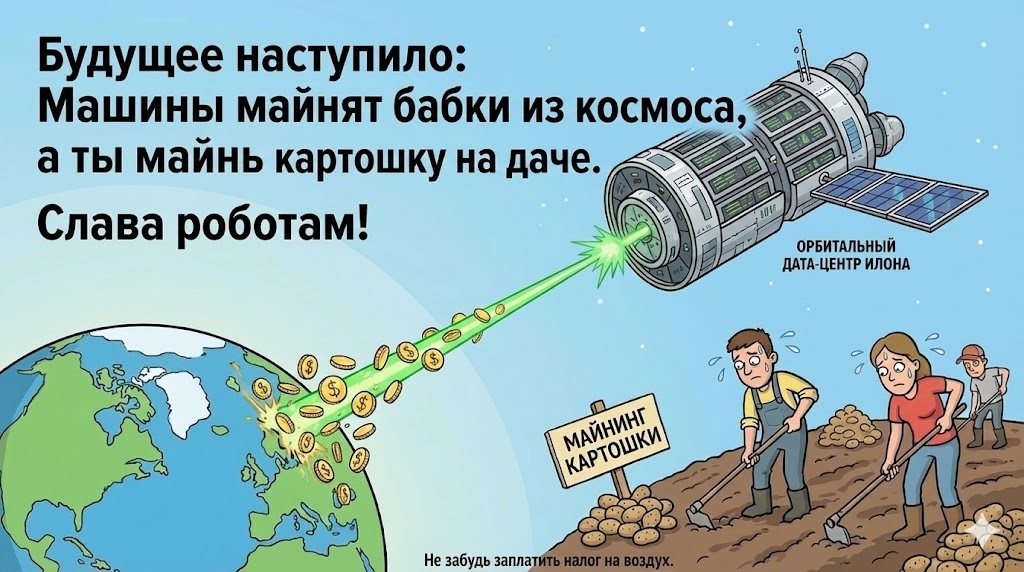 Мы сейчас цивилизация типа 0.7 по шкале Кардашёва (используем энергию мертвых растений — нефть/газ). Переход к типу 1 (полное использование энергии планеты) и типу 2 (энергия звезды/Солнца) неизбежен, если мы хотим кормить прожорливые ИИ. Дата-центры на орбите — это первый робкий шаг к постройке Сферы Дайсона. Или к тому, чтобы случайно поджарить какой-нибудь город микроволновым лучом при передаче энергии. Упс.