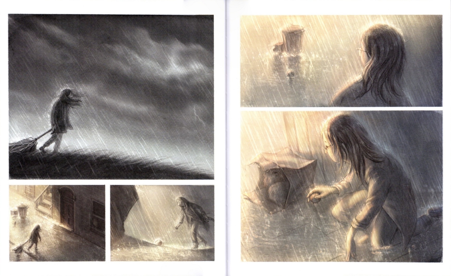 Это графическая история без слов рассказана с помощью удивительных полных динамики иллюстраций.Она о том, как иногда непросто довериться, не испугаться стихии, найти настоящего друга, обрести дом и имя.