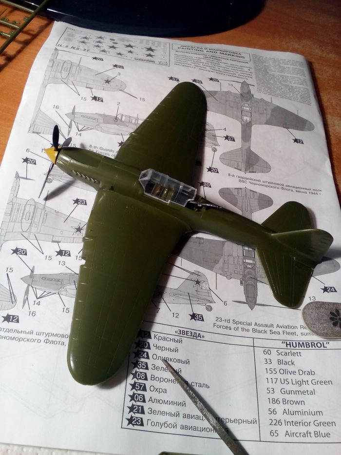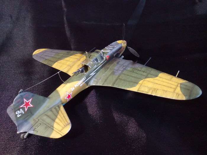 О модели: несложный набор от "Звезды" в масштабе 1/72. Оставил скорее положительные впечатления: неплохая стыкуемость, хорошее литьё, хорошая внутренняя расшивка. Фонарь кабины (кстати, даётся 2 варианта) слегка мутноват. В декалях присутствует минимум "технички", что неплохо для звездовской авиации в 72-ом. Имеется простенький интерьер кабины. Из недостатков - вообще не показан балансир вертикального руля на хвосте, также крыльевые пулемёты сделаны какими-то бугорками, стволиков нет. При желании исправить эти недоработки не составит труда, потому я вполне рекомендую этот набор начинающим или не особо щепетильным моделистам.