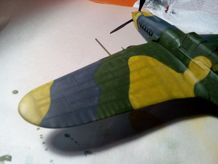 В последнюю очередь нанесён тёмный серо-голубой, самый тёмный цвет камуфляжа. После высветлений получил такую нерегулярную окраску:
