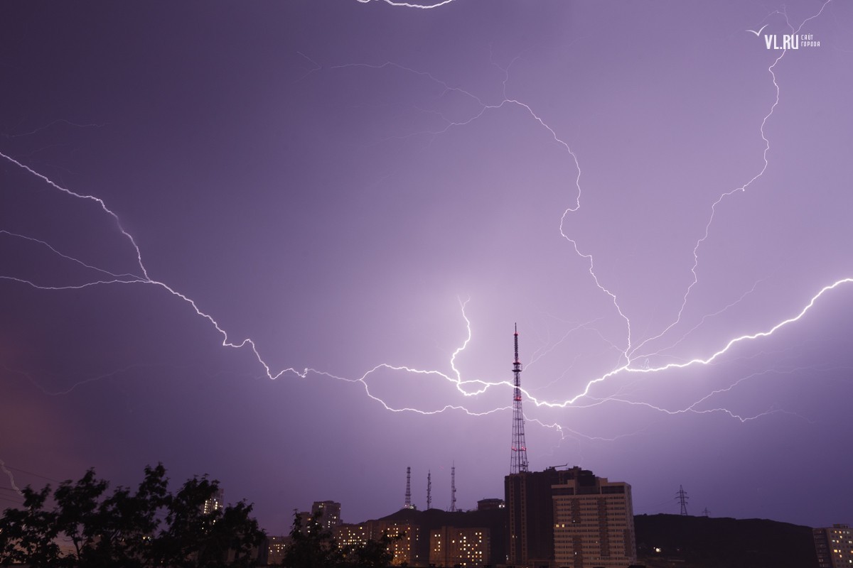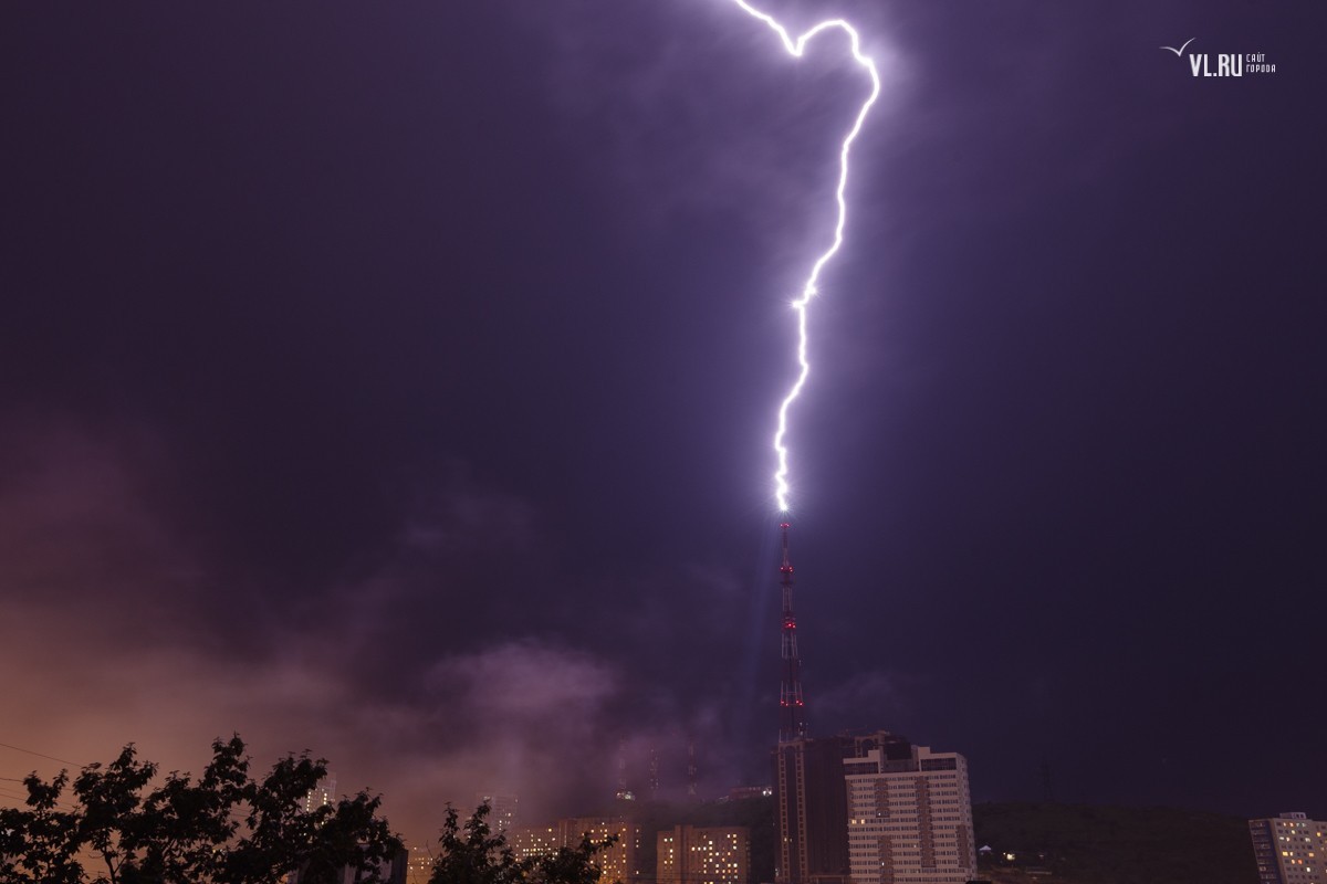 Первая грозовая туча пришла с севера около 19 часов. Резко потемнело, штиль сменился шквалом, начался сильный дождь. Несколько молний ударили в здания Владивостока, из-за чего произошли аварии на подстанциях и отключения света и воды в разных районах.