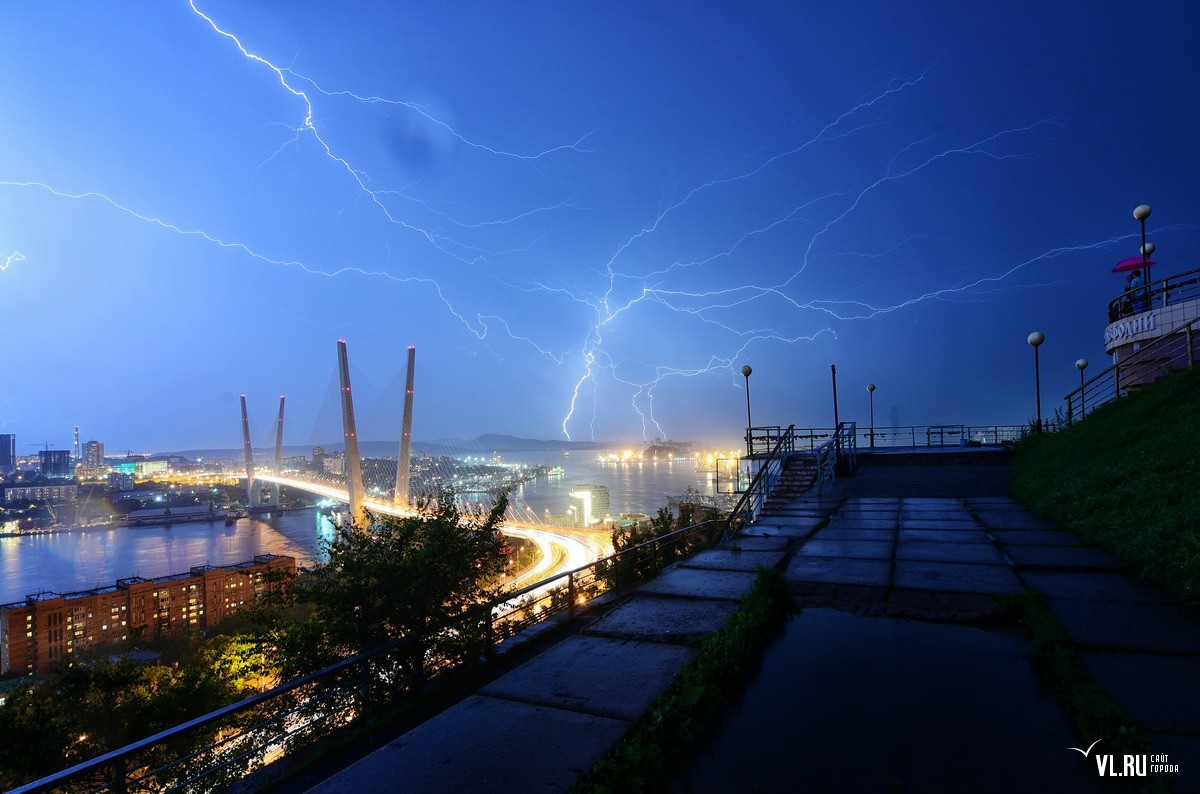 Две грозы пронеслись над Владивостоком вечером 19 июля. Фронты прошли над городом с разницей в пару часов.