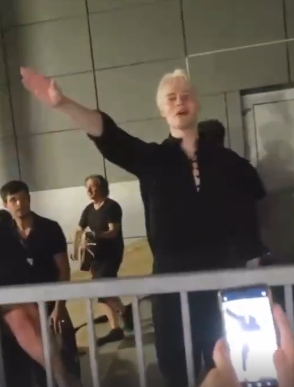 Ну то что он нравится вашим знакомым никак не отменяет его косплей на белокурого арийца, одежду косвенно похожую на фашисткую, повязки на руках, зиги и текста в его музыке с нотками превосходства нации. Ну серьёзно как можно быть таким слепым?