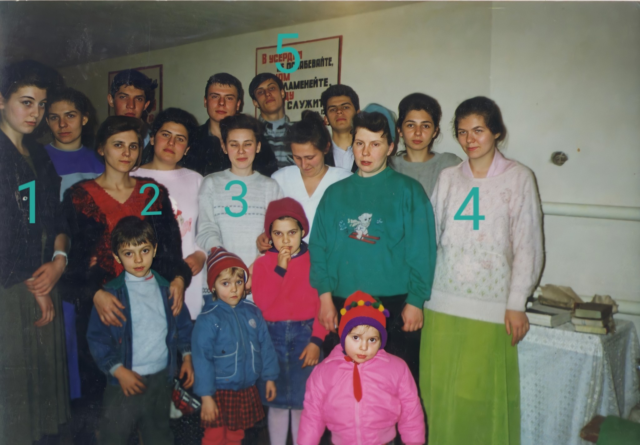 Моя старшая сестра решила побыстрей свалить из нашего инкубатора с постоянным аккомпанементом из матов отца и выскочила замуж. В 19 лет она уже родила. Вроде бы для второй это было хорошо. Но как оказалось до поры до времени. Третья сестра тоже вышла замуж и остались мы, вторая и четвертая одни с матерью и братом. День рождения близко по времени, праздновали вместе и подарки получали абсолютно одинаковые, чтоб не обидно было. Кстати, у нас не принято было делать день рождения просто из-за безденежья. Но потом, когда мы все начали ходить на собрание, уже верующие мою мать и старших сестер пристыдили и мы начали организовывать посиделки, "чтобы пригласить кого-то из родственников для благовестия им" Не как внимание к тому у кого день рождение. Фото после какого-то нашего дня рождения. Молодежь церкви Нарткалы. Как это обычно у баптистов водится - бабский батальон 8 незамужних сестер и 4 брата, один из них не местный.