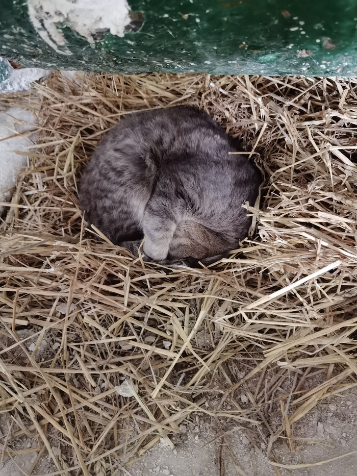 Наступила зима. Я пошла в отпуск, уехала из деревни. Меня не было всего около 10 дней. В первый же день работы после отпуска я заметила, что меня никто не выбегает встречать. Никто не мяукает и не требует, чтобы гладили. Спросив у телятницы, узнала, что произошло. У телятницы муж работает трактористом и он поехал забирать солому из скирда. В темноте, но тот заметил Котика. И заметил слишком поздно... Котик охотился в соломе и делал это в неподходящий момент.