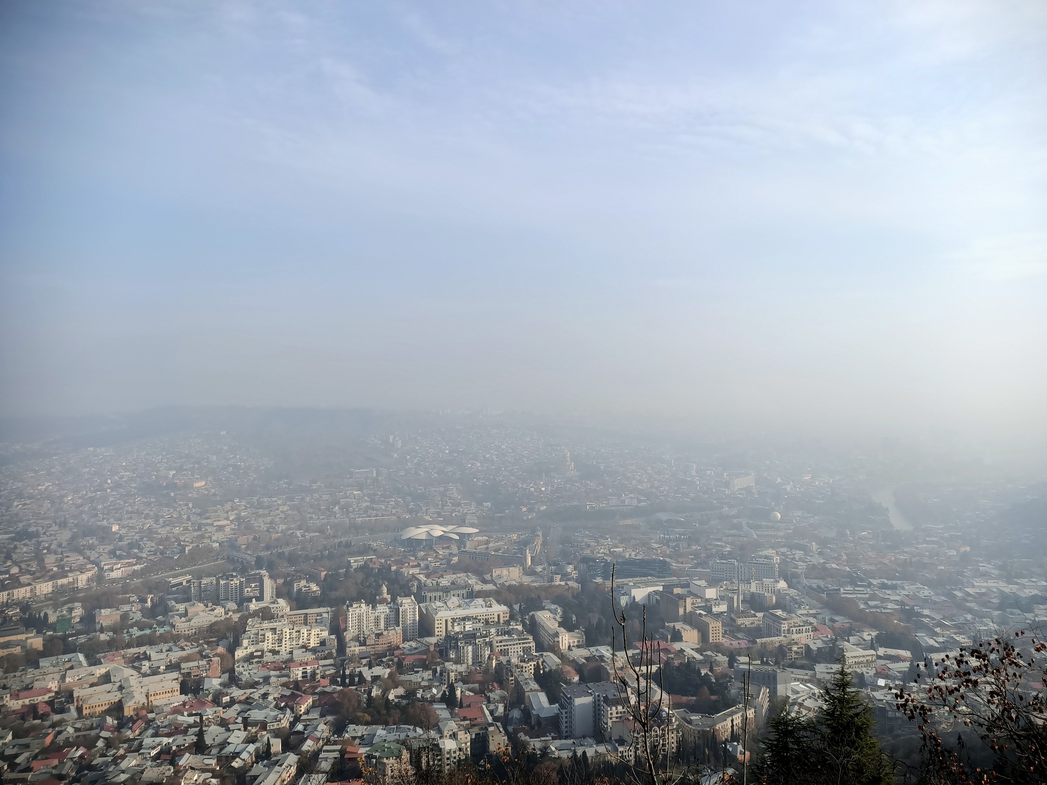 Вид на город с горы Мтацминда, рядом с Тбилисской телебашней.