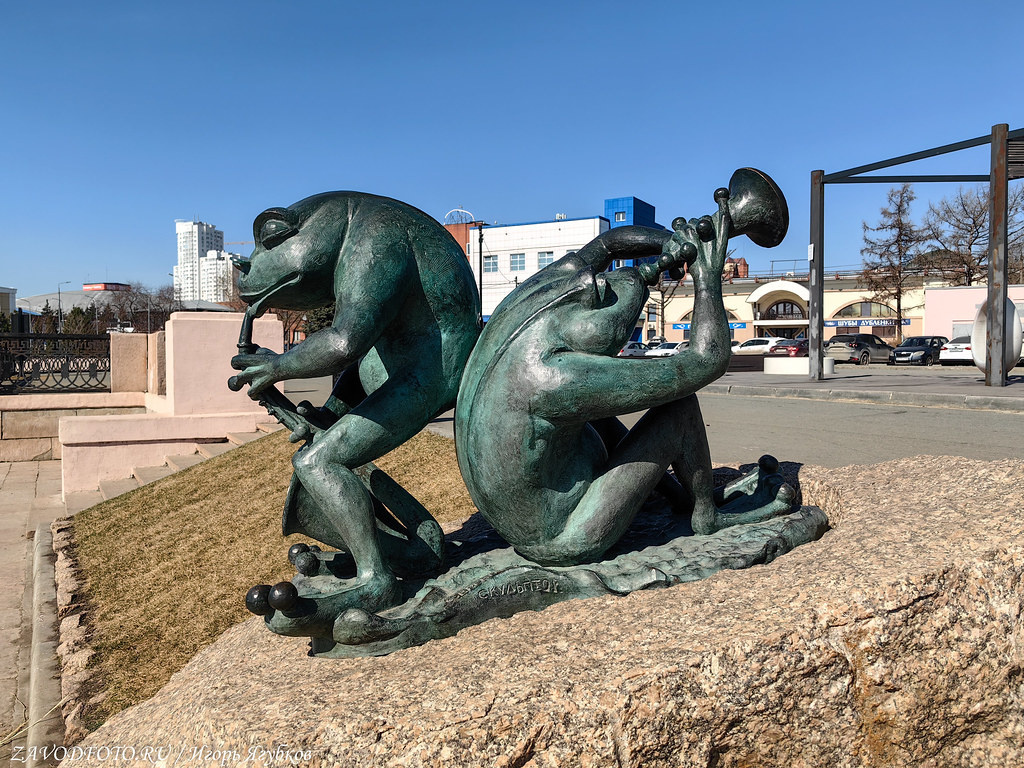 В июле 2019 г. на набережной реки Миасс в центре Челябинска появились лягушки. Две бронзовые скульптурки разместились у самой кромки воды напротив органного зала. Возле них горожане не только фотографируются, но и загадывают желания. Скульптурная композиция называется «Джаз» и представляет собой двух лягушек, играющих на саксофоне.