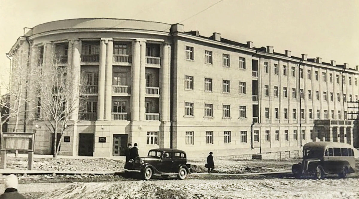 Даже сейчас аккуратно прочерченная, словно циркулем, дуга фасада здания намекает нам на конструктивистскую любовь архитектора к геометрическим формам. После войны гостиницу переделали под неоклассицизм, добавив капитали колонн, барельефы и прочие украшения.