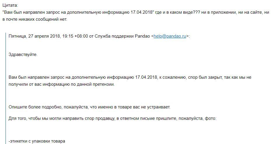 на дворе 28 мая, ответа так и нет, для себя сделал вывод относительно данного магазина, есть ли смысл заказывать на такой "честной" площадке. если продавец решит вас обмануть и прислать какой-нибудь хлам, вместо того хлама который вы на самом деле заказывали, поддержка вам ничем не поможет и не вернет деньги. Всем спасибо.