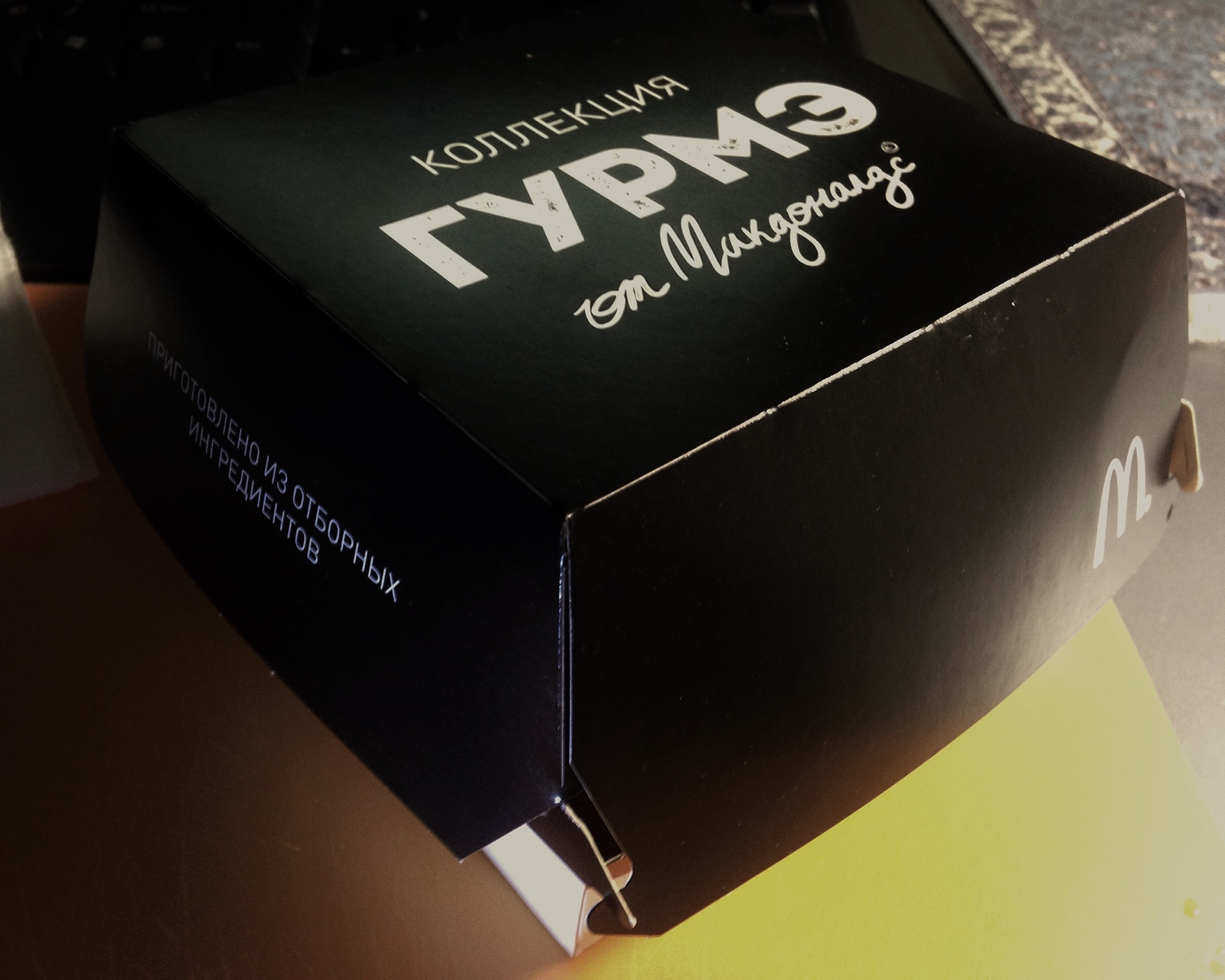 Ну чё, друзья!? МакДак наконец таки разродился реальными новинками, а не перекладыванием ингредиентов из одного бургера в другой. С сегодняшнего дня (01.05.2017) появились в меню 2 новых бургера. Вестерн Гурмэ и Гриль Гурмэ. Якобы какая то новая линейка(или как написано на коробочке "коллекция"). Сегодня тестим Гриль Гурмэ. По размеру как Биг Тейсти или около того.
