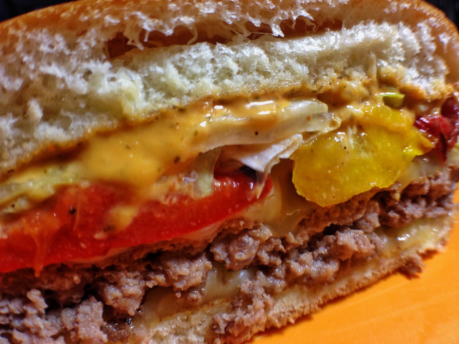 - Тут тебе и котлета не из чисто говядины, а с добавлением хрюши. Правда Хрюша особой сочности котлете не добавила, что крайне странно.