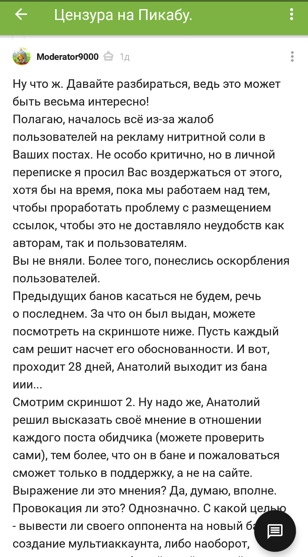 Некий @Anatoly161,жалуется на несправедливость и предвзятое отношение к себе со стороны модераторов.