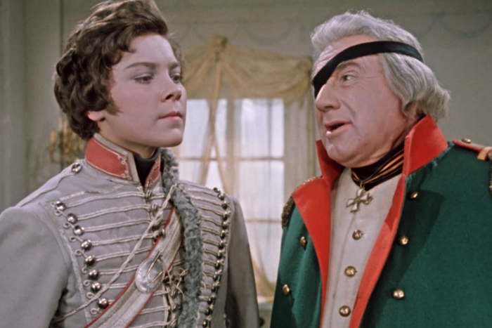 Для меня было неожиданным увидеть Ильинского. Я знал его только как «Огурцова из Карнавальной ночи», а тут он вдруг Кутузов. Забавно, но Рязанову не хотели его разрешать, и только весенний снег, который таял быстрее бюрократических согласований, спас эту роль. Так получился совсем другой маршал: не чопорный портрет, а живой голос со своим странным шармом.