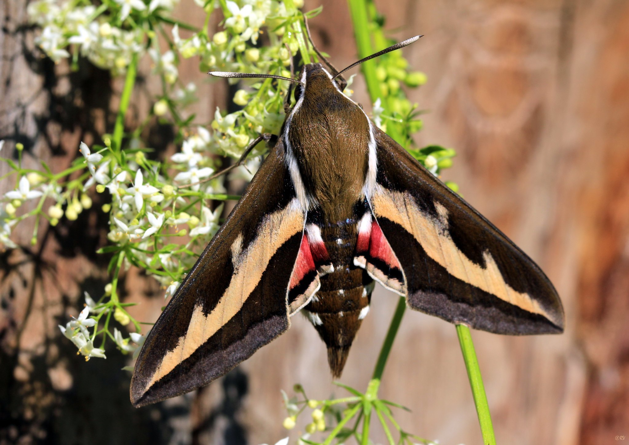 А бабочка — подмаренниковый бражник (Hyles gallii), такая вот хорошенькая и толстенькая. Этот "рог" вообще является отличительной чертой гусениц бражников.