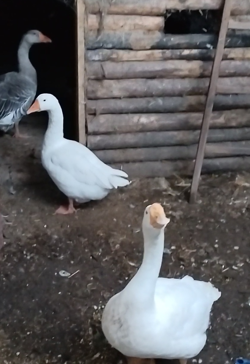 Приехали, стали выгружать их в сарай. Туда же посадили и гусака Чаку. Они от него спрятались. Спустя сутки стали выходить, знакомиться с Чакой, а через два дня стали в доску свои уже, разведали, где еда, где вода, где домик, чтобы прятаться и нестись, приняли нового гусака.