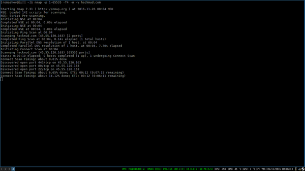 Ну, подумал я, раз уж решил пингануть, не будет лишним и пройтись nmap-ом по