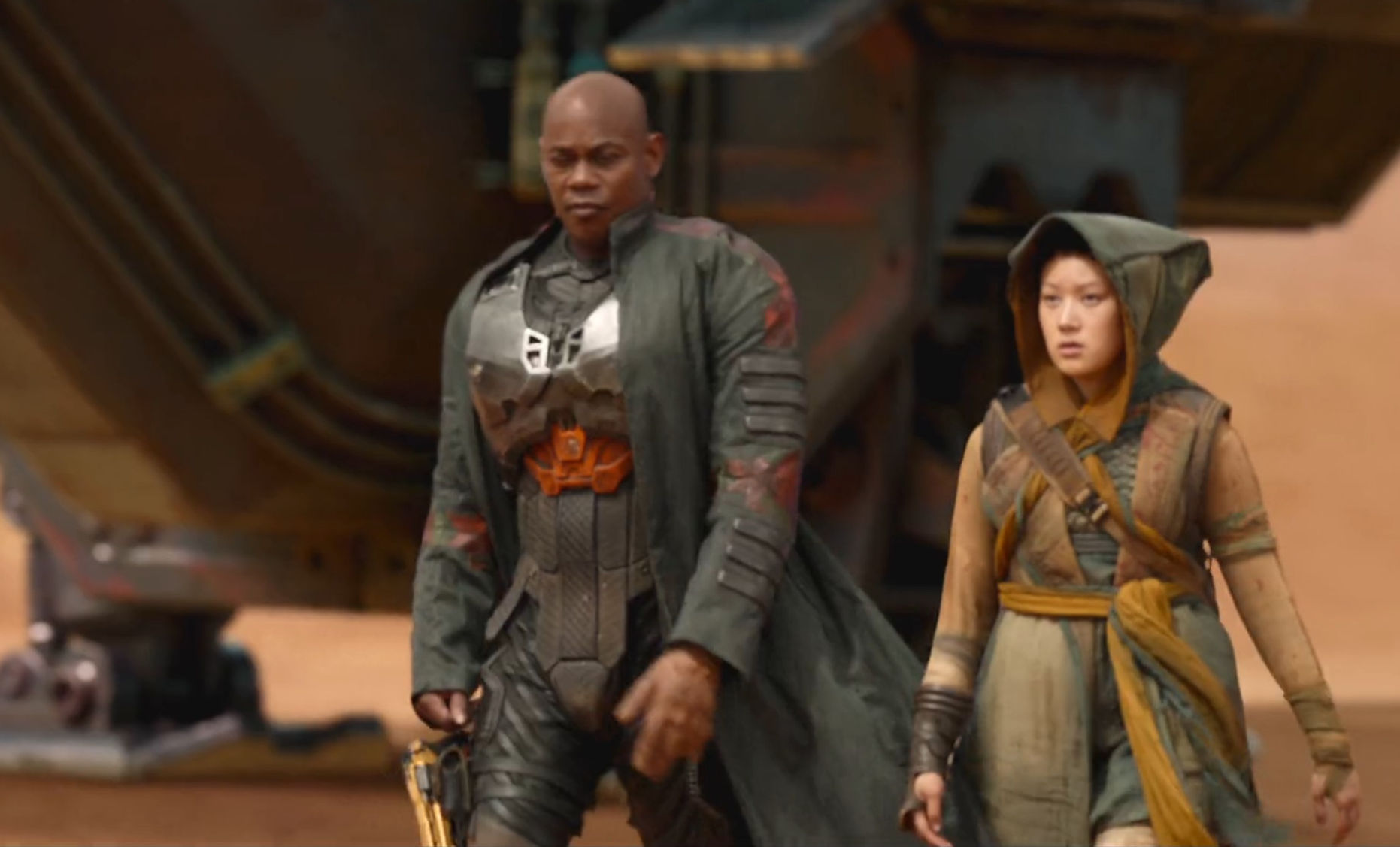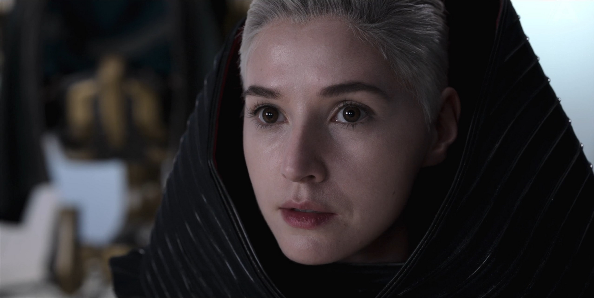 В команде Джона помимо него ещё три спартанца. Две девушки и парень. И из них мне запомнилась только КАИ в исполнении Кейт Кеннеди. Она хотя проявляет признаки критического мышления и аналитического ума. Остальные двое по имени Ваннак-134 (чернокожий парень) и Риз-028 (девушка с веснушками) вообще выглядят какими-то фоновыми болванчиками, видимо добавленными для того, чтобы бои не выглядели унылыми. Но надо отдать должное - бои здесь показаны отлично. В определённый момент сюжета Кай как и Джон удаляет у себя специальный чип, который подавляет эмоции, но повышает боевую эффективность. Последствия этого думаю понятны. Чем-то мне это напомнило аналогичный момент из фильма "Эквилибриум" с Кристианом Бэйлом в главной роли. Кто смотрел - поймёт о чём я. Скажу больше, было бы интересно увидеть какой-нибудь спин-офф с КАЙ в качестве главного действующего лица. Не канон? Да весь сериал не канон. Что уж теперь переживать. Как говориться, сгорел сарай - гори и хата. Но едем дальше.