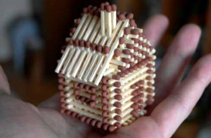 Домик из спичек был в каждом доме. Взрослым его могли подарить знакомые или дети делали, и дарили друг другу. Для того, чтобы сделать маленький домик достаточно было 2 коробка спичек по 1 копейке, ловкость рук и немного усидчивости. Достаточно было 1 раз научиться и можно было дарить такие домики своим знакомым по любому поводу.