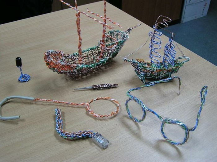 Неисчерпаемыми возможностями для творчества обладала проволока. Она была одинаково интересна мальчишкам и девчонкам. Из нее делали колечки, перстни, цветы, солдатиков, фигурки. Самое интересно, что проволоку в те времена нельзя было купить в магазине "Леонардо" по 200 рублей за моточек. Проволоку либо приносил папа с работы, либо ее нужно было искать на улице. Чаще всего она попадалась в местах скопления мусора. Оттуда ее и приносили домой.