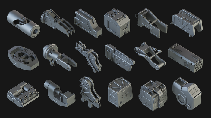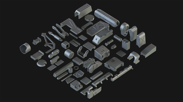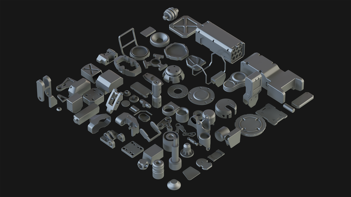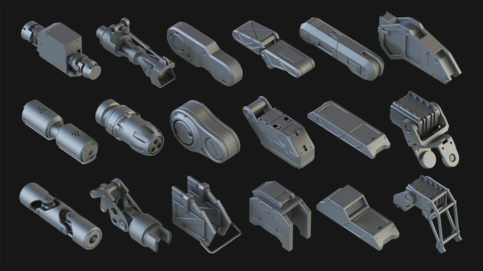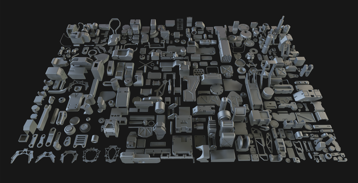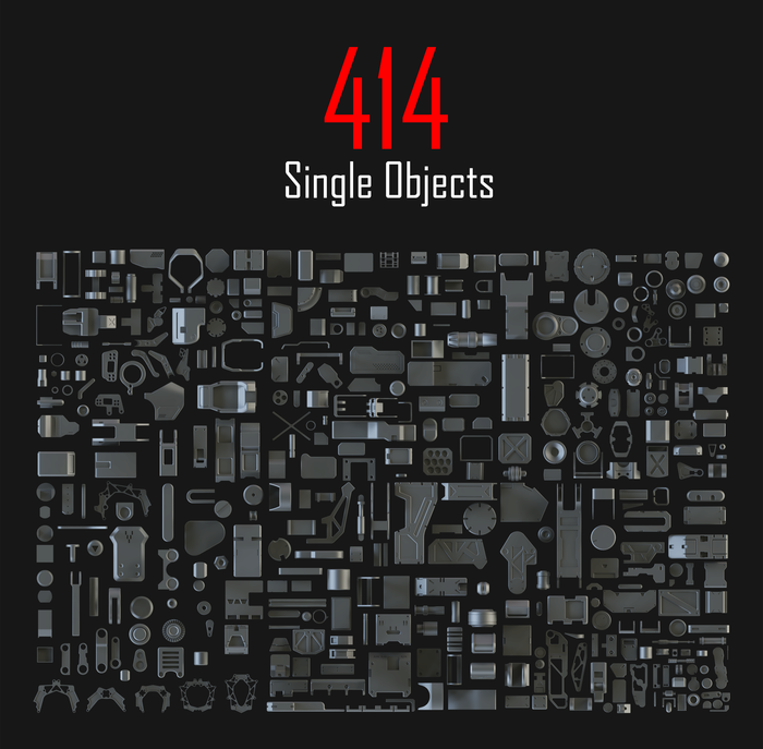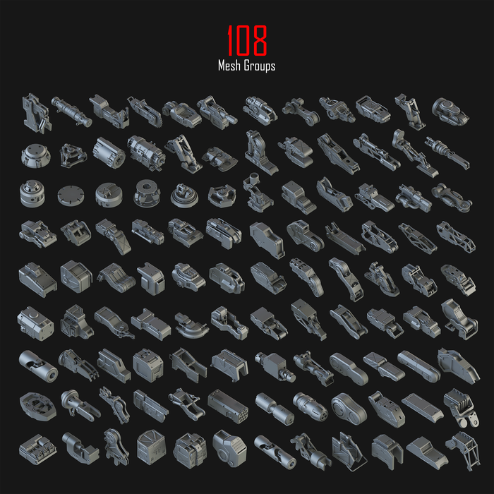 Я хочу поделиться с вами новой коллекцией, которая называется Hard Surface Kitbash Pack 01. Я надеюсь, что этот набор станет полезным для многих других 3D-художников и дизайнеров в разных областях CG! Эта огромная библиотека состоит из 414 отдельных объектов и 108 групп, которые могут быть использованы в создании потрясающих роботов, мехов, Sci-Fi устройств, оружия или любых других механических объектов, просто используйте свое воображение! Я надеюсь, что вы найдете этот набор полезным, и он поможет вам в вашем творчестве!