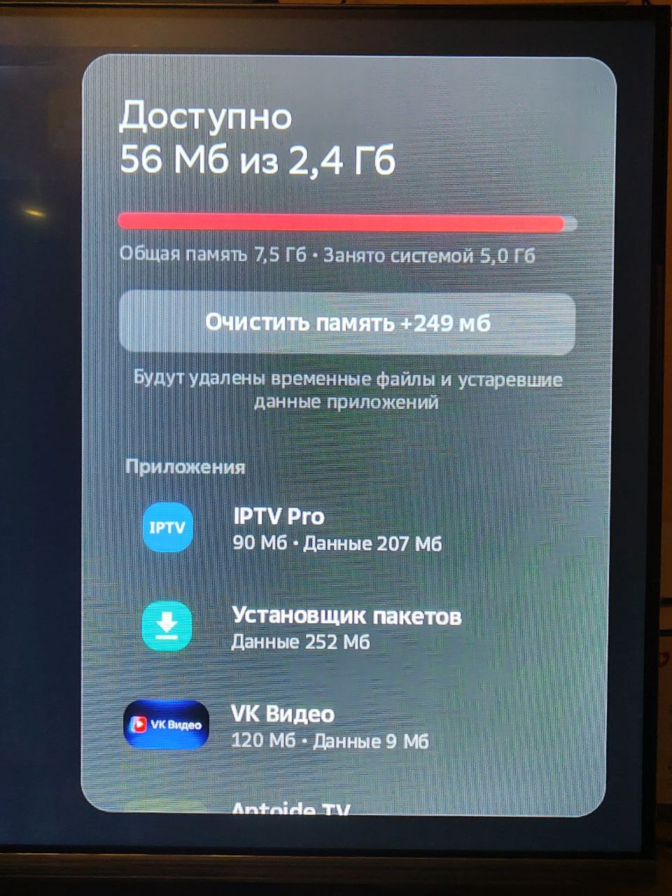 8Gb для Smart-TV не так уж мало! А вот 2.4Гб... И это - всего несколько часов полета. Приложения еще не забили свои кеши.