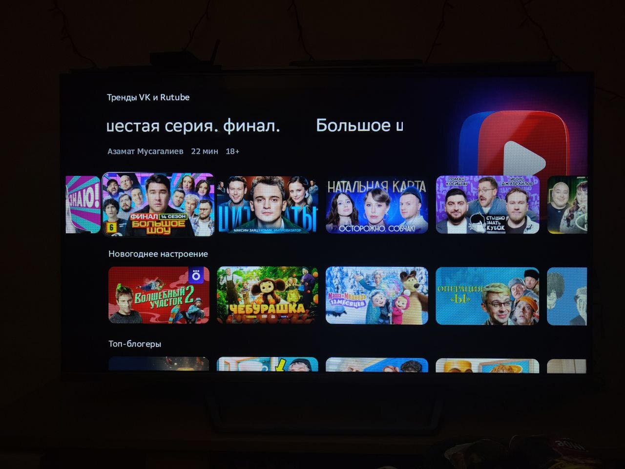 Дальше главный экран будет соблазнять вас кинопродуктом отечественным импортозамещенным. Тренды ВК и Рутуба.... Наши затертые стендаперы, которые без устали друг к другу по кругу ходят, какие-то неизвестные журналисты, берущие интервью у неизвестных "звезд". В общем, а чего вы хотели? Какой ВК, такие и тренды.