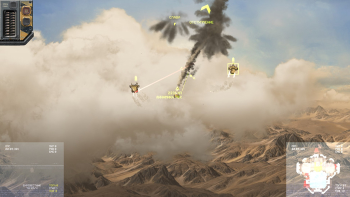 Многотысячетонные монстры, которых держат в воздухе реактивные двигатели на сжиженном метане. Корабли могут сражаться друг с другом в формате двухмерной аркады: маневрировать (в отлично проработанной физической модели, кстати), стрелять друг в друга из пушек и пускать ракеты, чтобы живописно разносить друг друга по частям благодаря модульной системе повреждений.