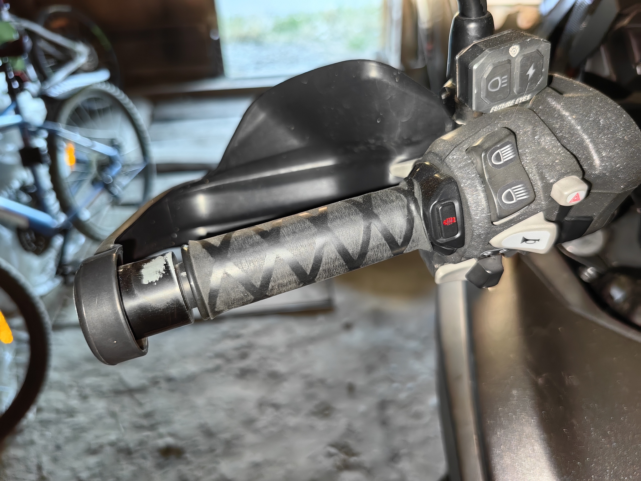 Скользкие ручки. Они обычные, на многих мотоциклах такие, По ощущению, как будто из пластика, вместо резины. Из-за этого постоянно газ «выскакивает» на кочках, приходится сильнее сжимать руку, в дальней дороге она затекает. Неприятно же.