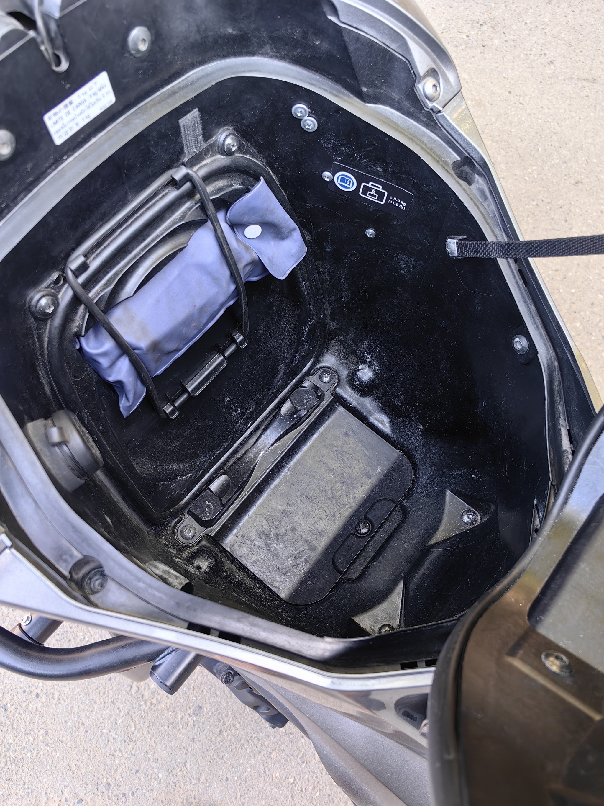 Чтобы заправить мотоцикл нужно открыть заднее сиденье. Если вы едете вдвоём, то скорее всего пассажир всё равно будет слезать, чтобы размять ноги и пятую точку, а вот если один, да ещё в долгую автономку, то наверняка захочется поставить на заднее сиденье сумку. На каждой заправке придётся всё это снимать и ставить назад. Странно, что не сделали как на том же BMW F800GS.