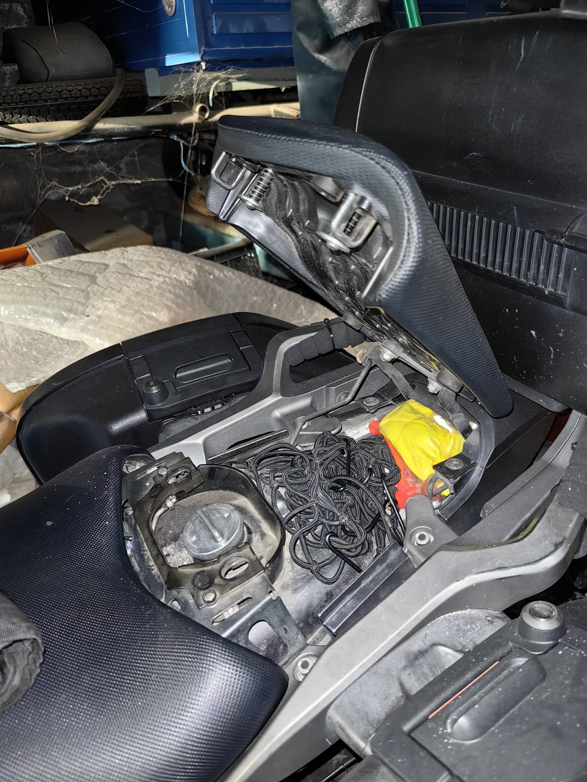 Электропривод открывания замка бардачка. Если проблема с ключом настолько частая (у меня оба ключа достались уже гнутыми, я решил не рисковать), то и решать её надо превентивно. Есть много «рецептов», как и какой электропривод установить, но суть одна – открывать замок без ключа. Кстати, установив такой "наборчик", вы сможете открывать кофр на ходу и доставать оттуда вещи, например бутылку с водой. Или на остановке не глушить мотоцикл, достать вещи/документы, закрыть бардачок и поехать дальше.