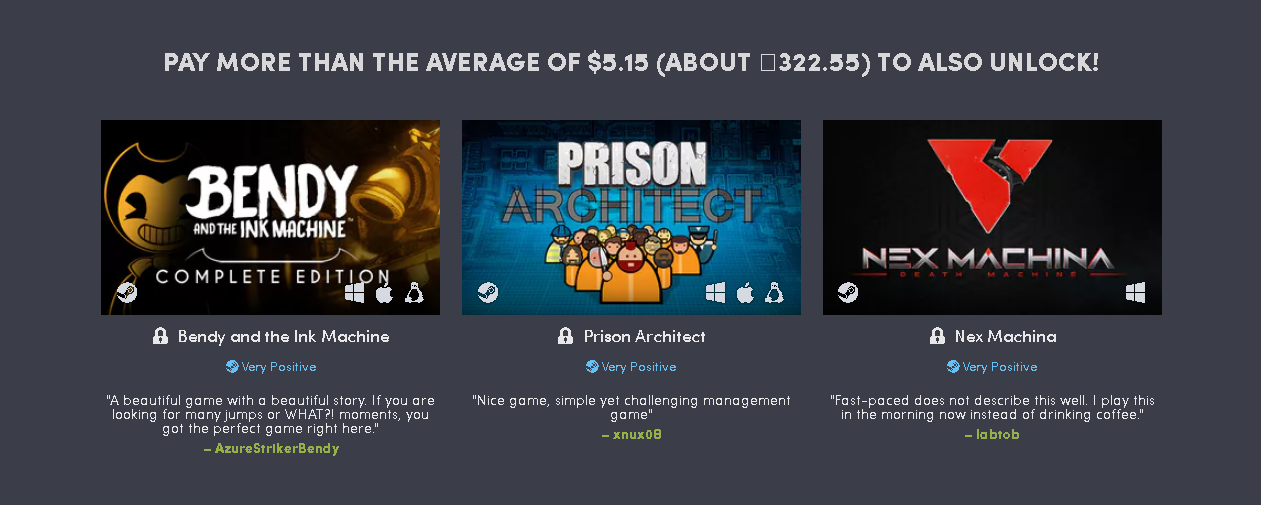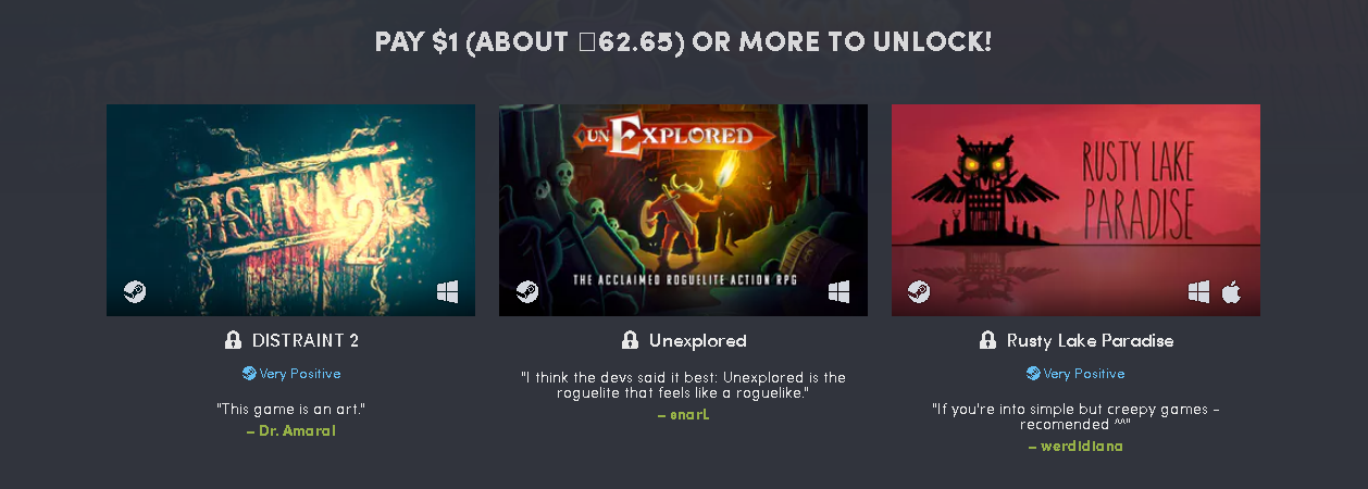 За 1 $ вы получите следующие игры с возможностью активации в Steam: