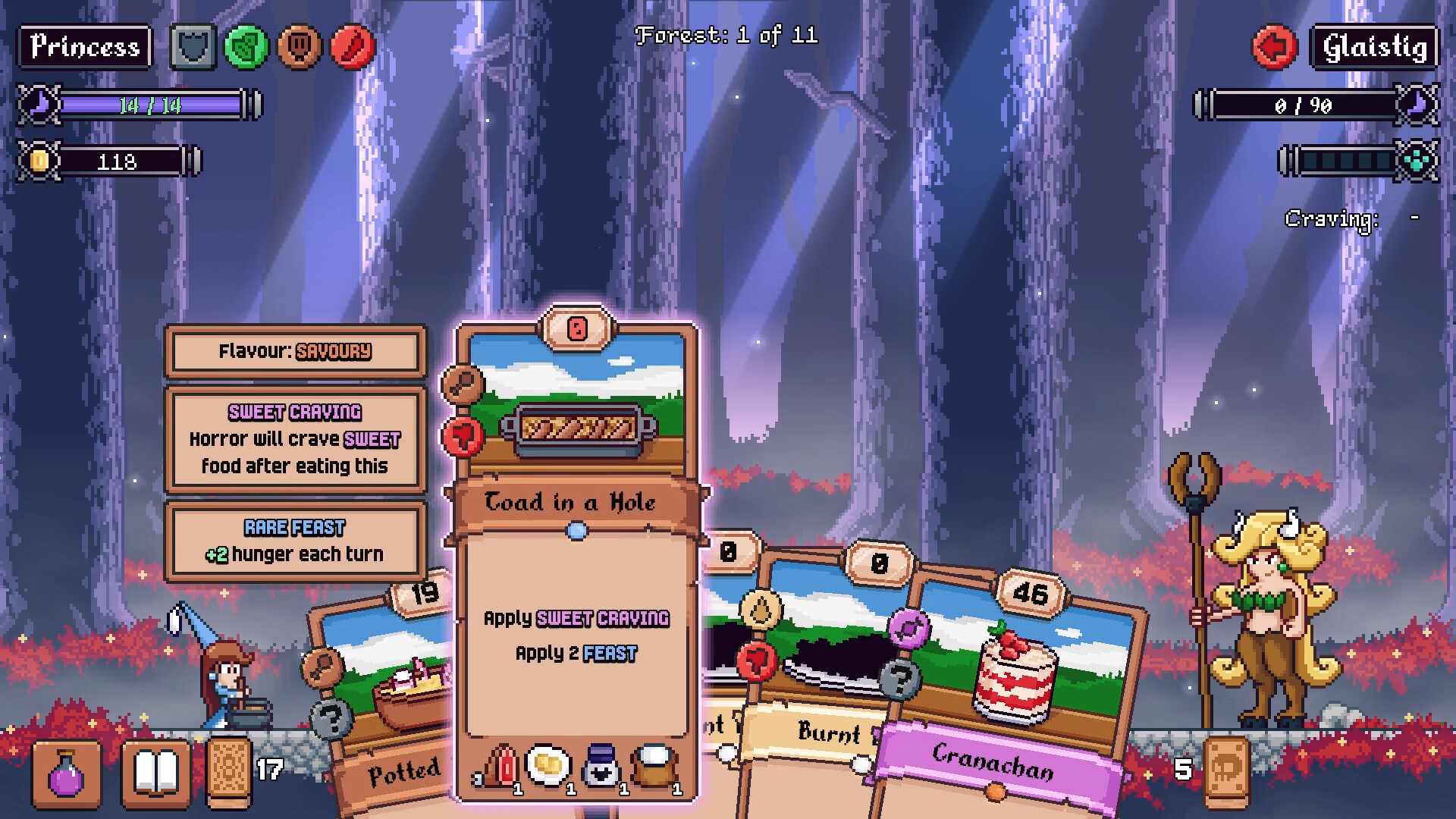 Вы — принцесса, стремящаяся спасти королевство, и ваш путь лежит через мир, наполненный британскими фольклорными чудовищами. Чтобы победить их, вам предстоит накормить их необычными блюдами, такими как пиклёные яйца, хаггис или йоркширский пудинг.