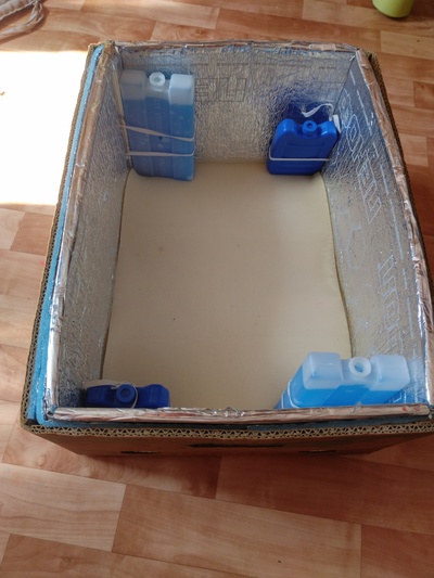 Ну собственно у меня так сейчас. Коробка из под бананов обклеена теплоизолятором. Часа 2-3 холод держит. Выглядит непрофессионально, хотелось бы более презентабельное что то.