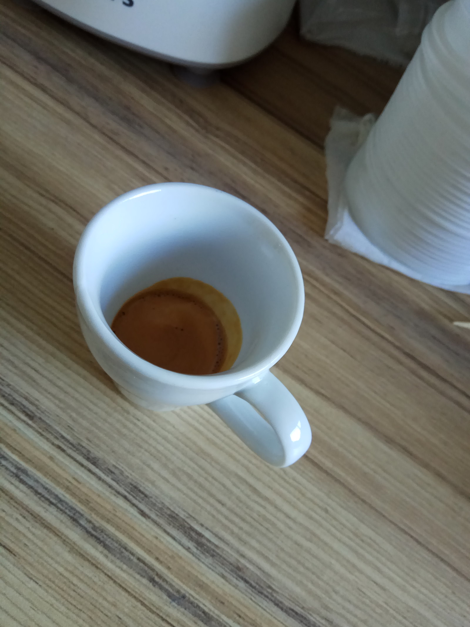 По сути, образно выражаясь, ристретто является экстракцией кофейных крема. Один маленький, бомбический глоток. Вкус сложный, и горький и кислый одновременно, что выходит на первый план трудно сказать. Самое интересное, что в послевкусии явно были солёные нотки.