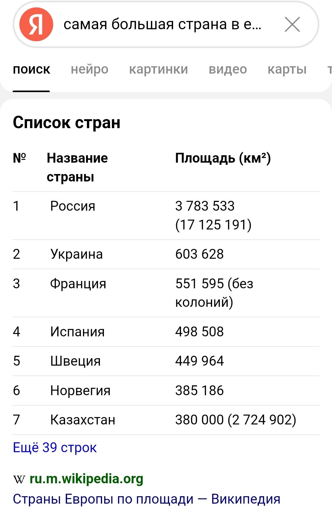 Ну технически мы не совсем в Европе. По той же логике можно спрашивать какая самая большая страна в азии