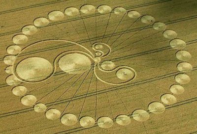 с помощью веревки, что держит постоянный радиус - получается ровный круг - первый комментатор это указал. Относительно сил и времени - все просто, народ ради мистификаций/славы делал "рисунки" на кукурузных/пшеничных полях - очень точные и огромные, что их было видно из воздуха).