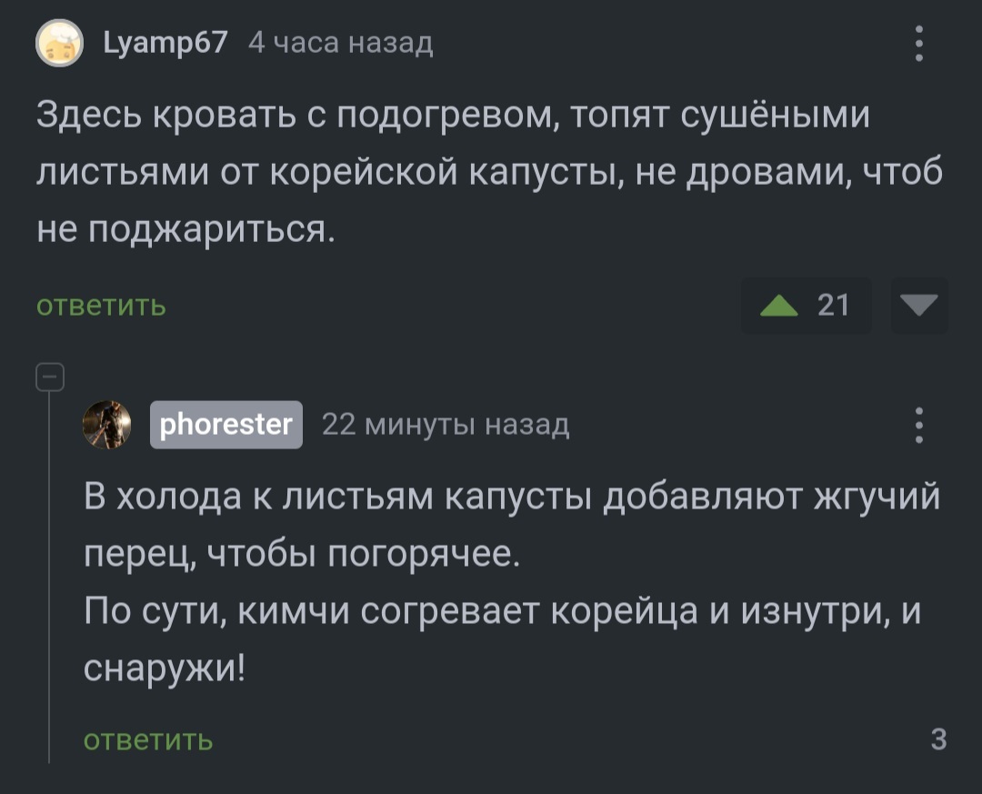 7 phorester Лига отборного бреда И кимчи съесть, и на тёплое сесть 2 года назад #comment_283022795 Кимчи Капуста Корея Корейцы Печь Абсурд Комментарии на Пикабу Скриншот Ещё 0