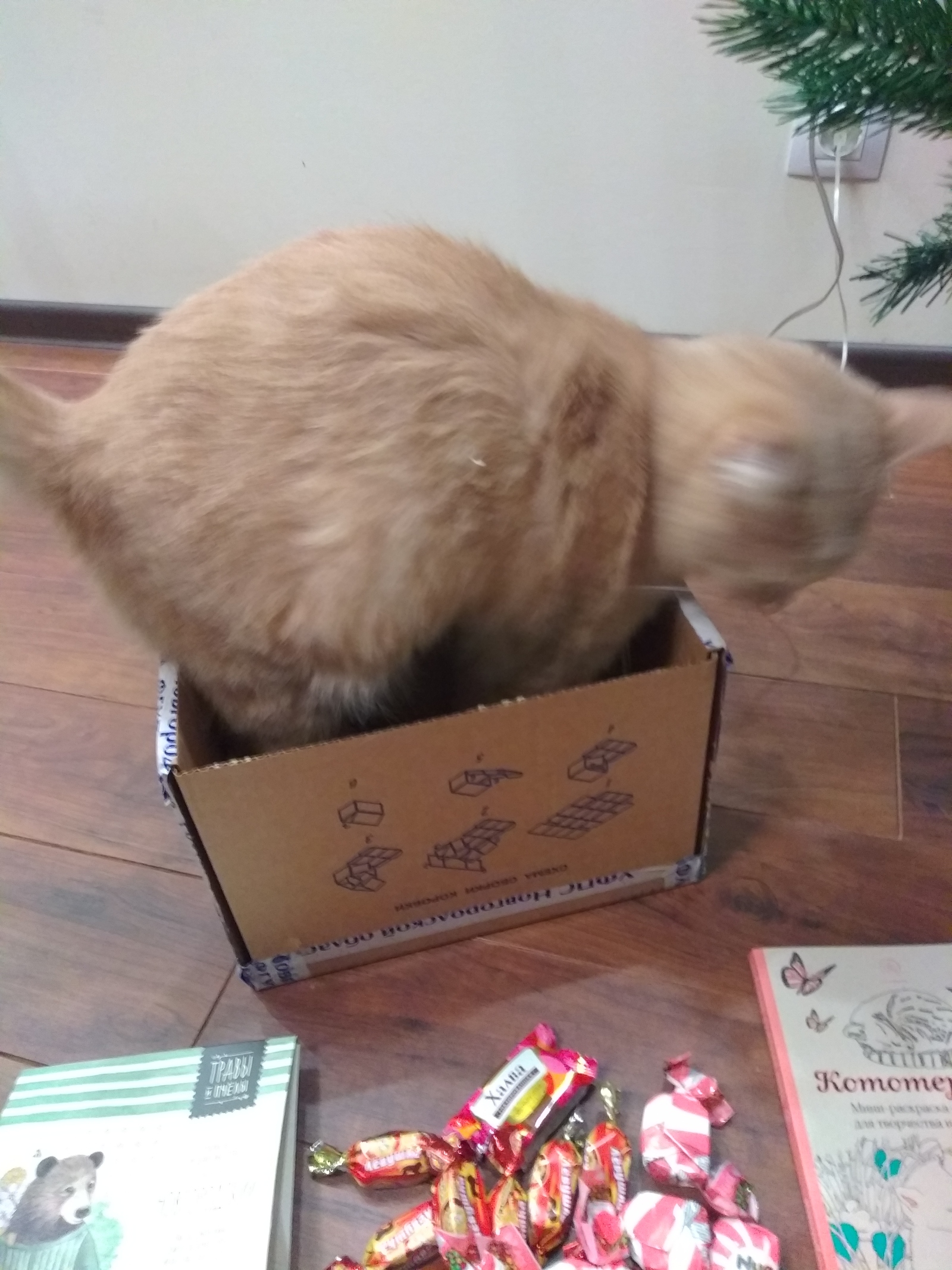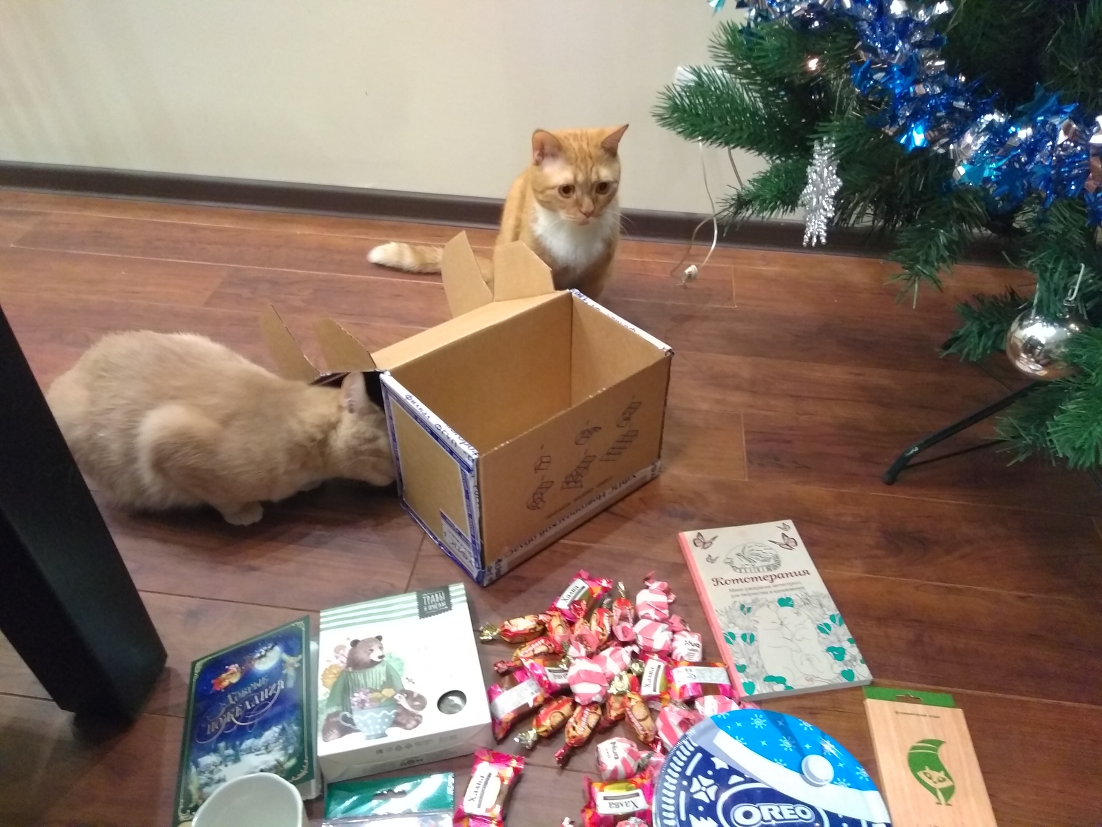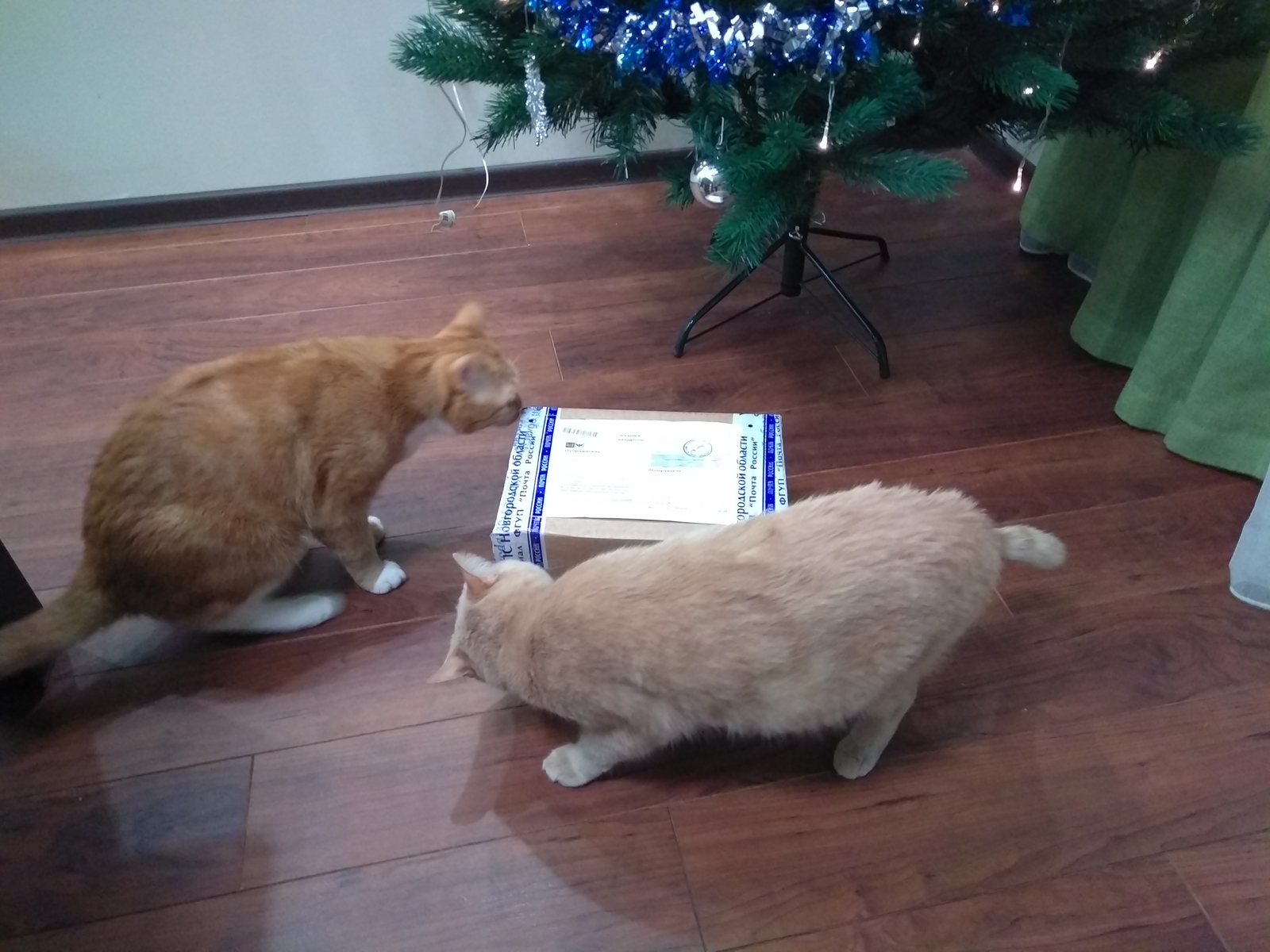 Коты коробку не очень оценили, высоковата и не могут влезть=\