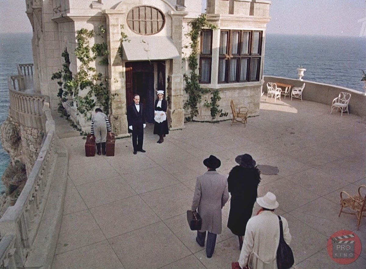 Рабочий процесс съёмок фильма проходил непросто. «Ласточкино гнездо» настолько любимый и легко узнаваемый объект, что в фильме его надо было изменить, задекорировать, скрыть, сделать неузнаваемым, и неизвестным английским замком. Для этого часть строения закрыли декорациями, но сильные порывы ветра часто срывали фанерные щиты. К счастью, никого не зацепило.