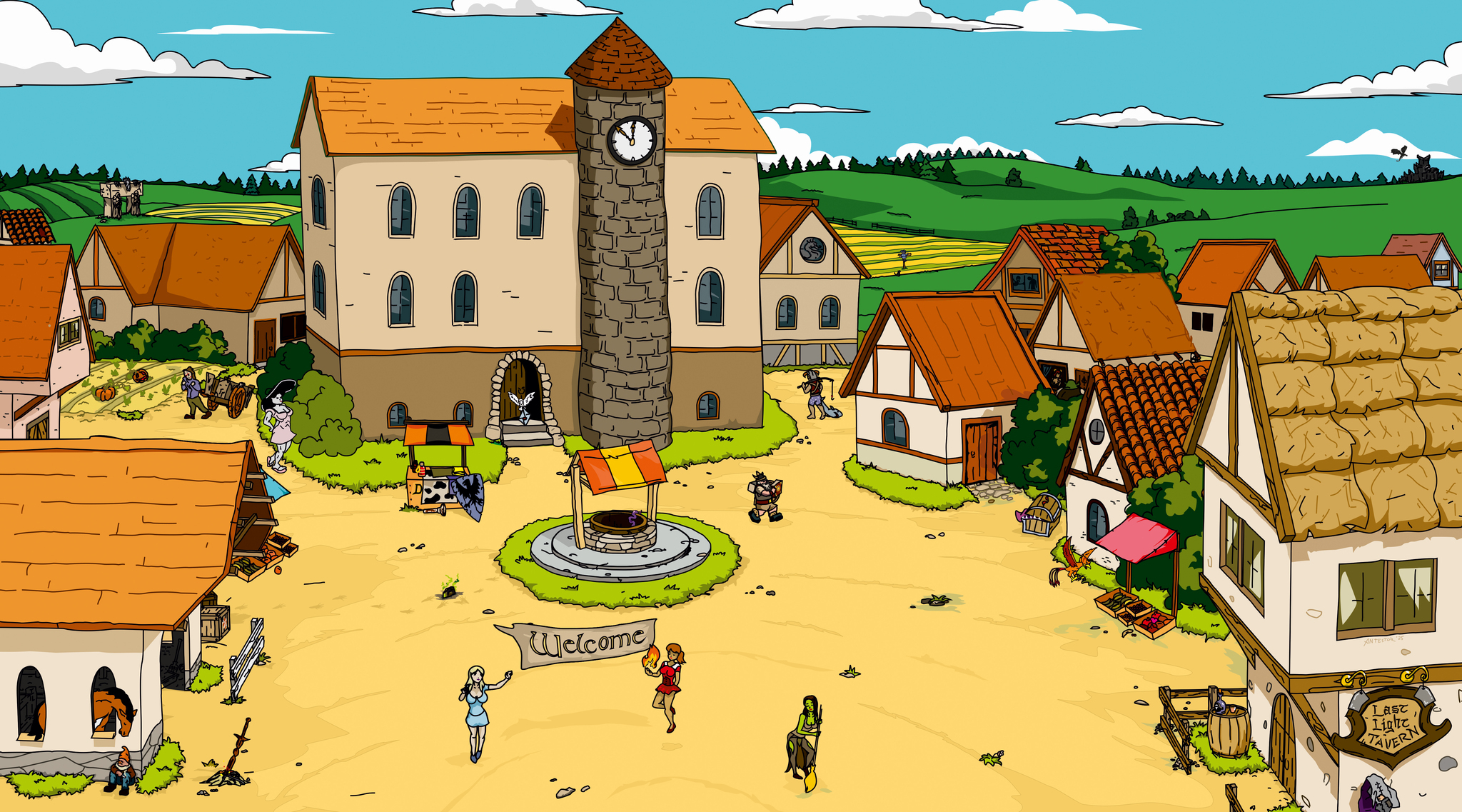 Нарисовал уже 3,5 страницы! А всего будет целых 4!!! Очень надеюсь на это - так как мне это все уже порядком надоело. Тем не менее, в рамках этого бесполезного по сути занятия, я решил развлечься и один из кадров сделать Превью к самому комиксу и пасхалкой к нескольким играм, книгам, фильмам и мультфильмам из фентези и не только вселенных. Напихал, что вспомнил годного и со скрипом, влезающего в общий сюжет. Случайные зрители же могут проявить дедукцию и попробовать все отыскать) 15-20 тайтлов (можно в камменты).