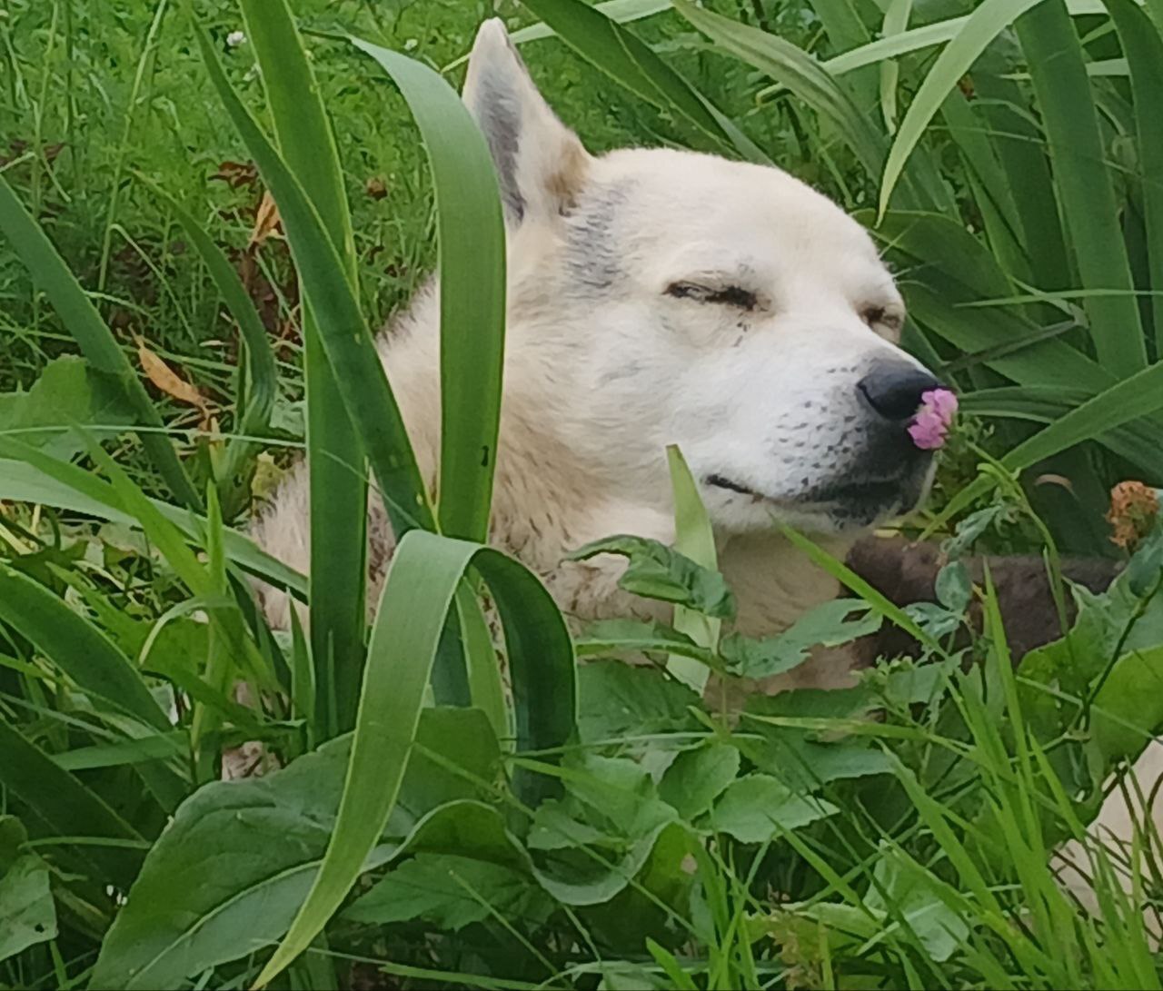 Нюхает цветок