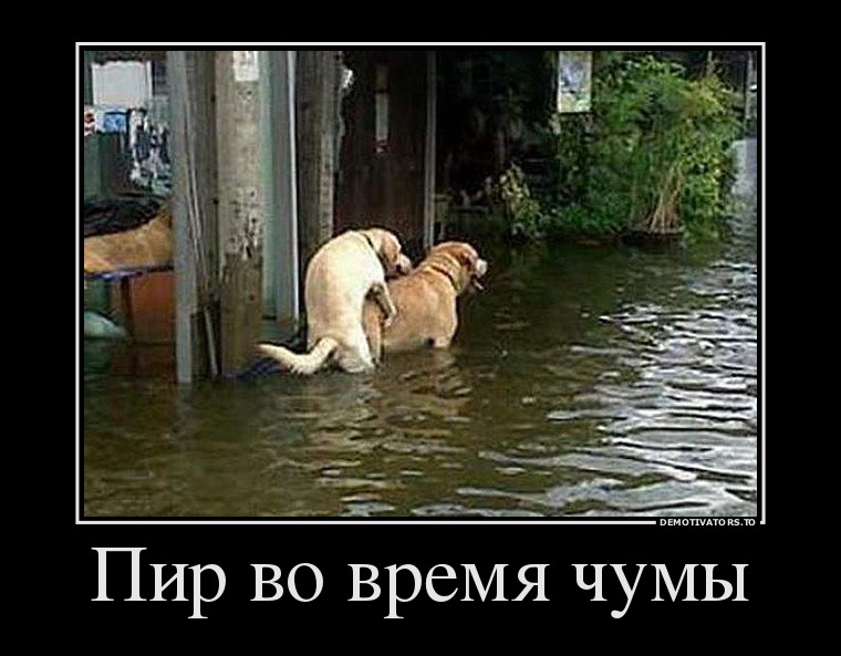 Правильный инстинкт, - Во время любой катастрофы нужно плодиться! Позвоню-ка я бывшей.. Чет дождь начинается..