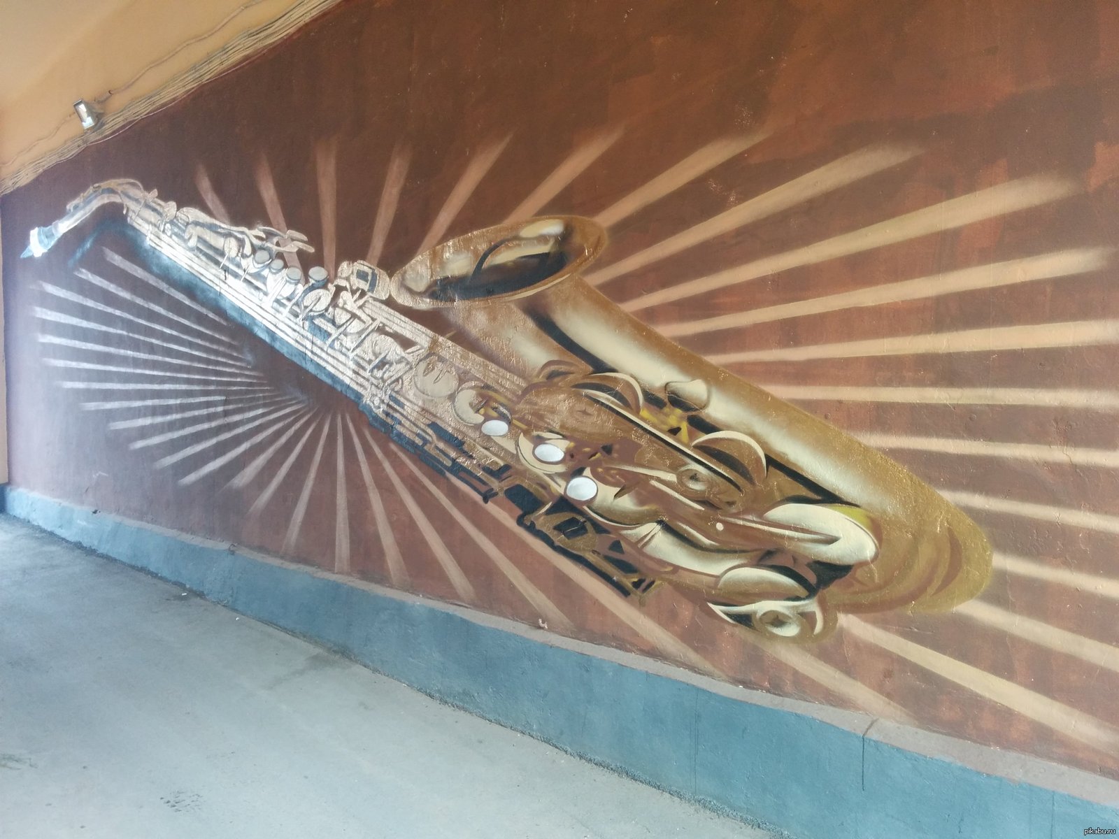 5 guitarer И снова граффити в Уфе. 10 лет назад В арке рядом с новым музыкальным баром М.Джаггер [моё] Уфа Граффити Саксофон