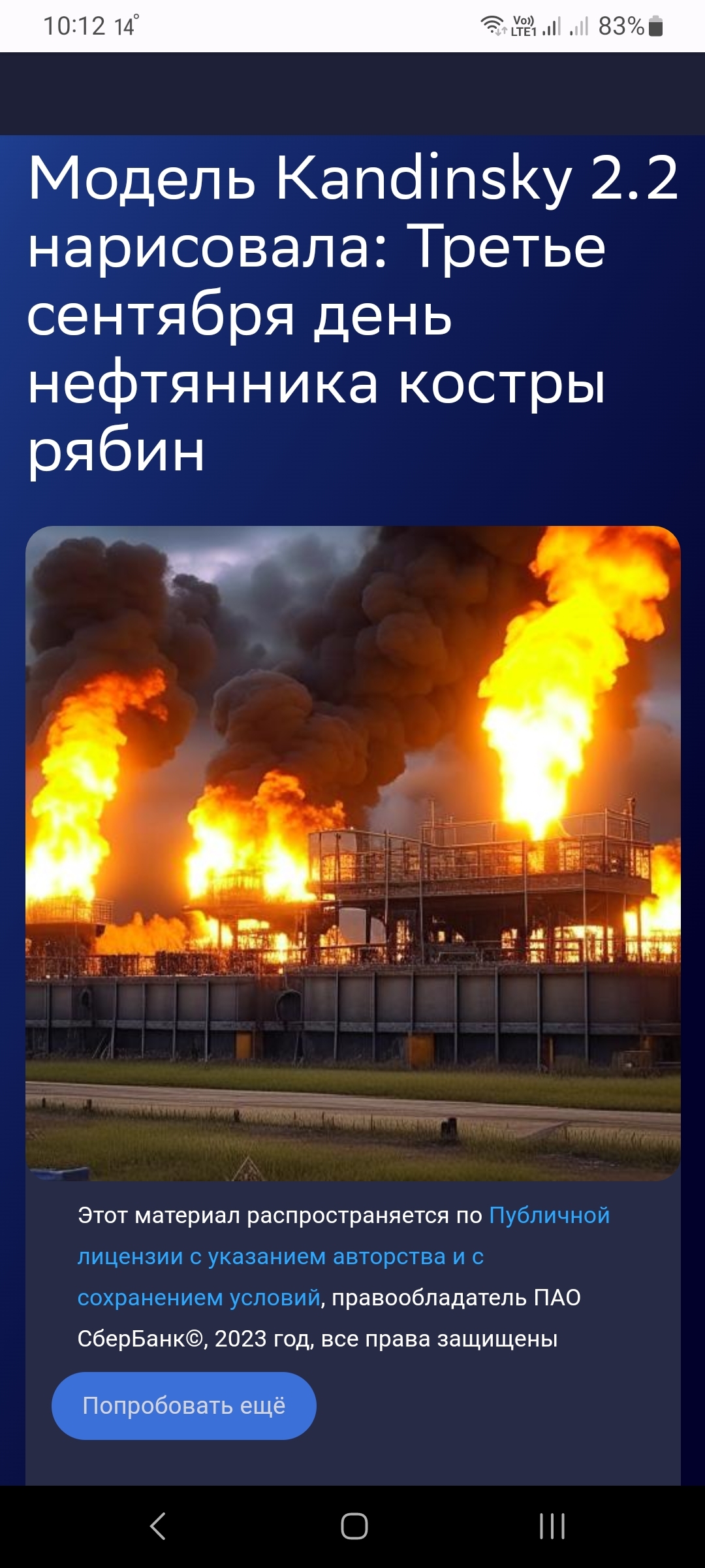 4 c2n24021984 И снова... ИИ 2 года назад https://rudalle.ru/check_kandinsky22/b67139a4-d22c-4391-95dc...# Скриншот Искусственный интеллект 3 сентября День нефтяника Картинка с текстом Длиннопост 1 Ещё 0