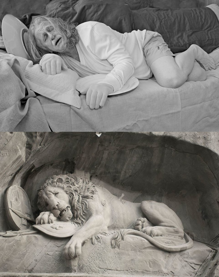 Раненый лев. Каменный рельеф в Люцерне, Швейцария, разработанный Бертелем Торвальдсеном и высеченный в 1820–21 годах Лукасом Ахорном.