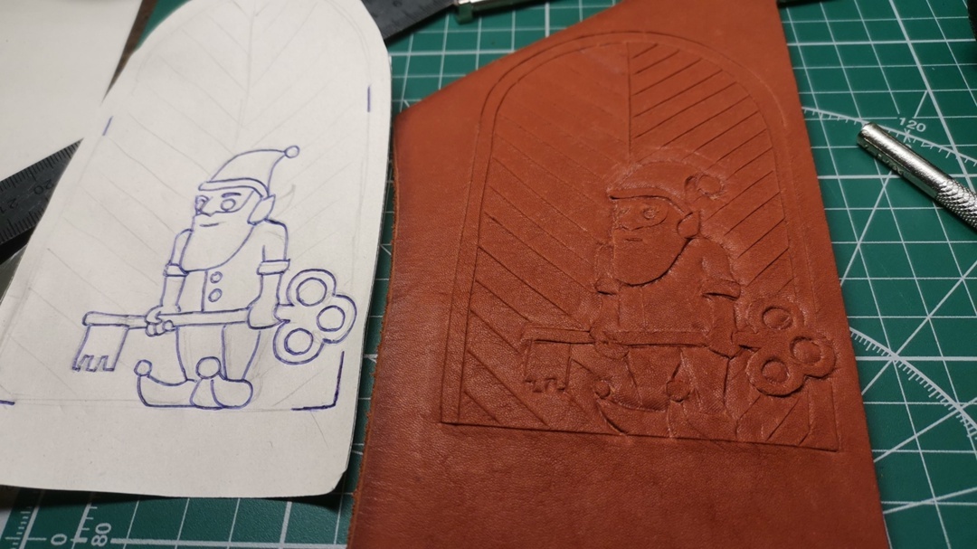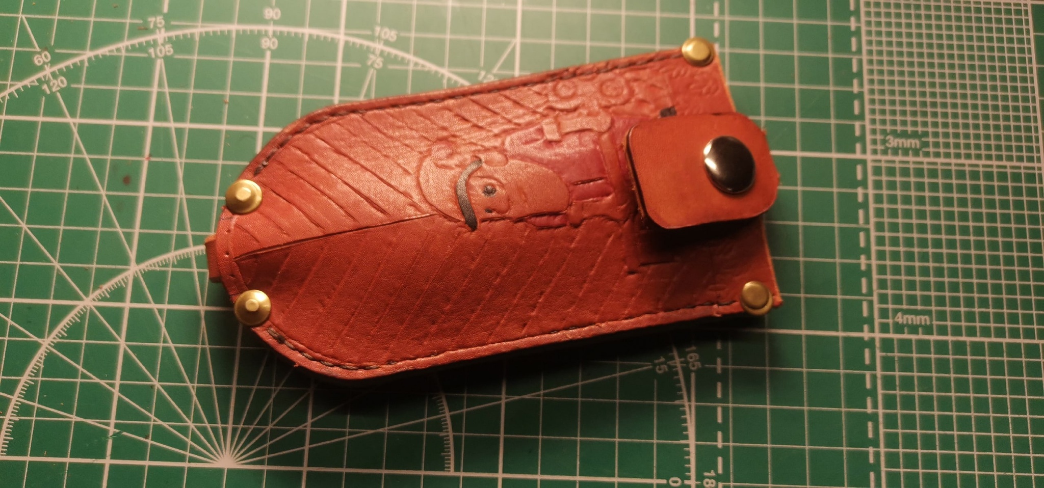 Давно хотелось попробовать тиснение, и после борьбы внутренней жабы, внутреннего хомяка и внутреннего шила, купил поворотный нож. Набросал на картинке какую-то картинку
