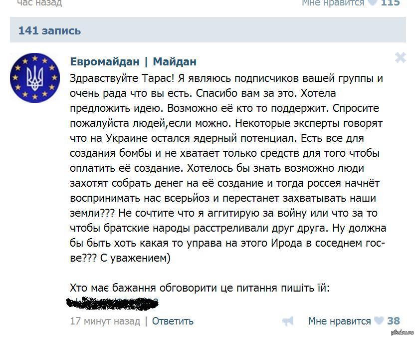 492 spyro2003 11 лет назад И снова мой "любимый" паблик "Евромайдан" :)) *всерьйоз :)) аггитирую! Майдан Украина ВКонтакте Ядерное оружие