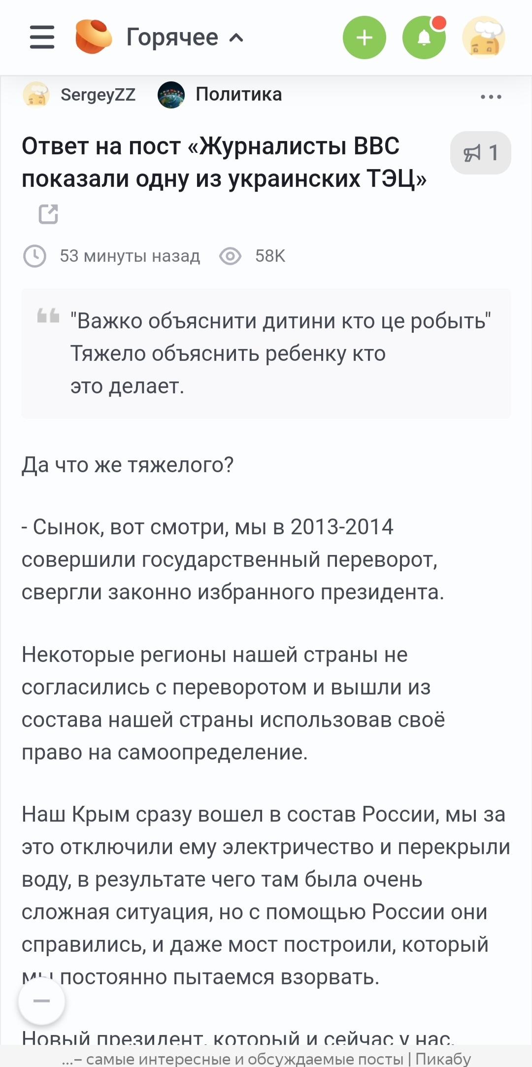 - кто из Модераторов ЗАБЫЛ, как новые украинские власти лишили жителей Крыма электроэнергии и воды? Для освещения памяти: https://www.rbc.ru/politics/14/10/2022/634960069a79475dcd765...